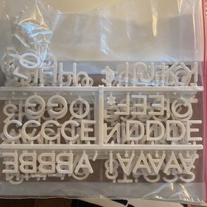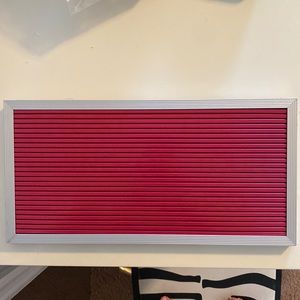 Maroon letter board, used once, includes multiples of all of the letters, can hang, about 12 inches x 5 inches