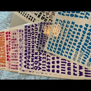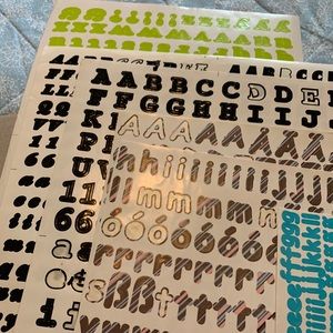 Various sheets of lettering used with scrapbooking and making cards. Some are gently used. THIS ITEM HAS SOLD.