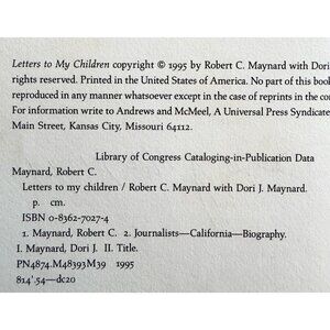 Letters To My Children Signed 1995 First Edition HC Robert & Dori J Maynard HBS