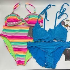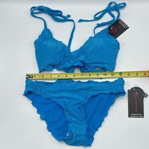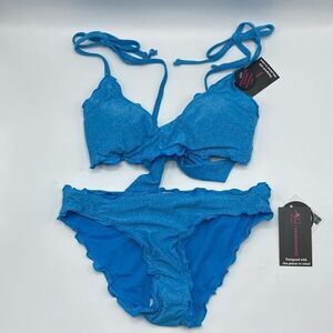 Lettuce Edge & Knot Top & High Leg Bottom Bikini Swimsuit Bathing 2-Pack S