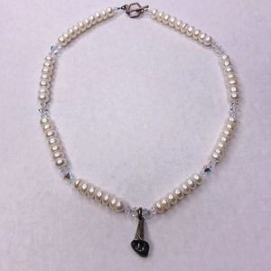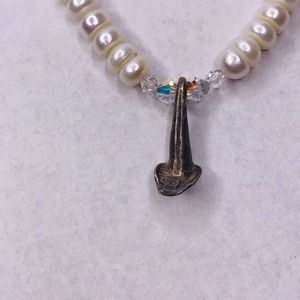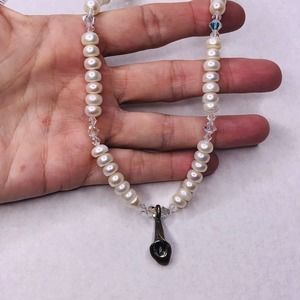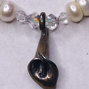 Lety G Sterling Silver Calla Lily FLower Charm Pearl Necklace Faceted Glass Bead
