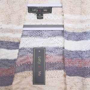 Lety & Me Cream and Purple Striped Crochet Knit Cardigan Sweater Size Medium