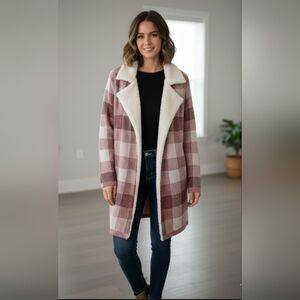 Bundle up in effortless style with this plaid open-front cardigan by Lety & Me (Stitch Fix brand). Features a soft faux-sherpa collar and half lining for that cozy layered look without the bulk. Perfect for chilly days with jeans or leggings!