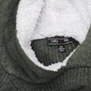 Lety & Me Womens Plus Size Sherpa Pullover Sweater Hooded Green 2X