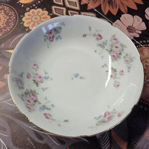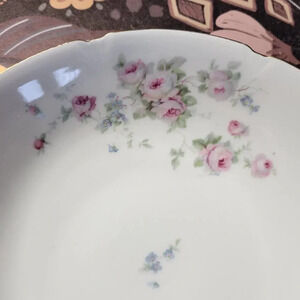 Leuchenburg White Pink Floral Porcelain Gold Trim Lightly Scalloped Salad Bowl