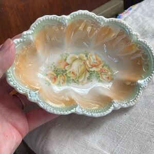 Leuchtenburg Germany Antique VTG. Porcelain celery serving dish. Scalloped edges and a luster finish. Floral Decor. Minimal wear.