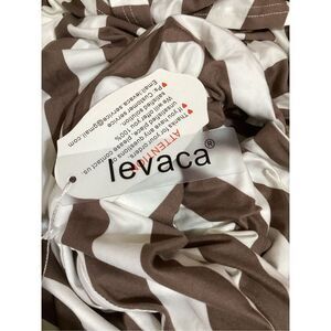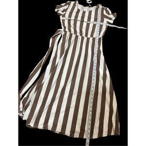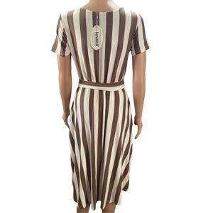 Levaca Short Sleeve Taupe / White Striped Swing Midi Dress S