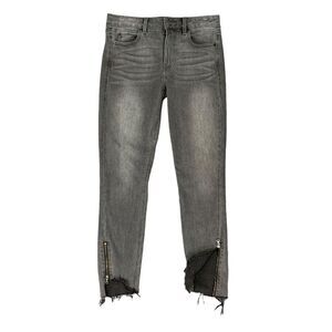 Level 99 Abbie Blackout Jeans Womens 27 Mid Rise Uneven Zip Slant Raw Hem Denim
