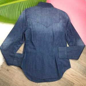 Level 99 Anthropologie Chambray Long Sleeve Snap Button Shirt