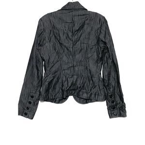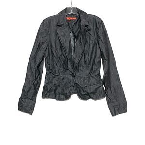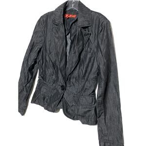 Level 99 Black Denim Blazer Jacket One Button Cotton Lyocell Stretch Womens M