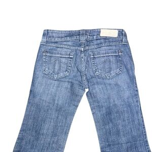 Elevate your style with these classic blue flared jeans. Perfect for any casual outing.
