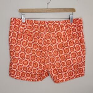 Level 99 | Coral Orange Red Sunshine Circle Print Linen Blend Chino Shorts