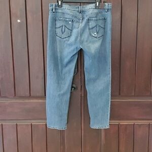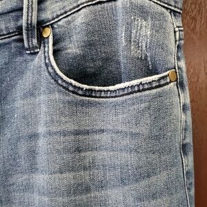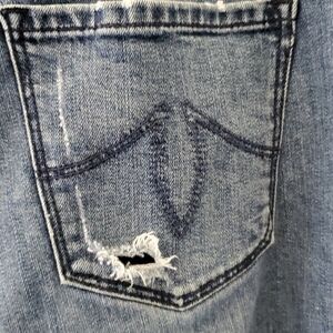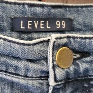 Level 99 Skinny Straight Distressed Jeans Rn #99299 Medium wash ditressing on back pockets EUC