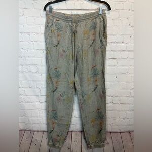 Level 99 Linen blend floral print Pants tapered Leg Utility Jogger, sz S
