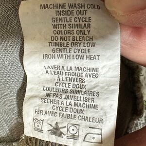 waist flat 15", outseam 38", inseam 28", rise 10"pockets, elastic drawstring waist, lightweight, good used condition, see photos