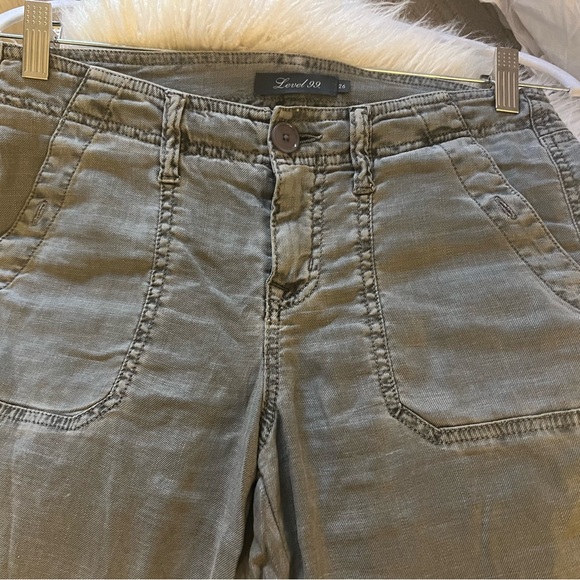 Super cute Level 99 pants, new and never worn but no tags. Gray color, button/zipper close, button cuffed bottom legs. Double pockets front and back and side cargo pocket.