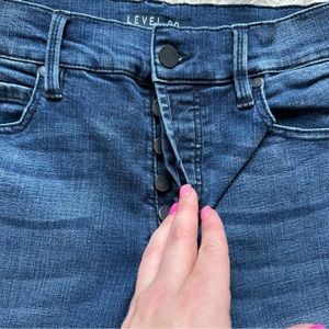 Level 99 Jeans. Size 29. Raw step hem. Button fly. Ankle length. High rise. Seam down the back of both legs. Excellent condition.