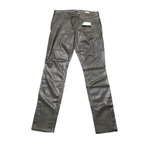 Level 99 Women's Coated Jeans Signature Skinny Dark Olive Green Mid Rise Size 29