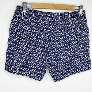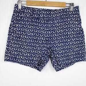 Level 99 Womens Linen Blend Shorts Size 27 Blue Printed Summer Casual Mid Rise