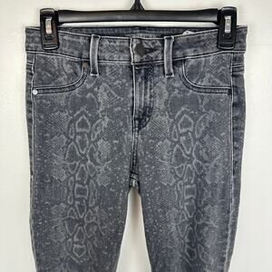 Level 99 Womens Snake Print Mid Rise Light Grey Button Zip Closure Jeggings 25