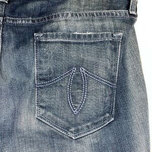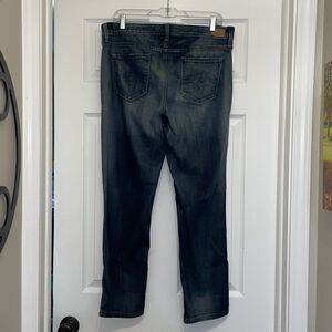 Level 99 Lily Mid Rise Dark Distressed Straight Jeans, size 32. Excellent used condition! Nice amount of stretch.