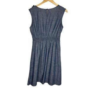 Level Eight Women's Dress Blue Chambray Flower Scoop Sleeveless Faux Denim Med