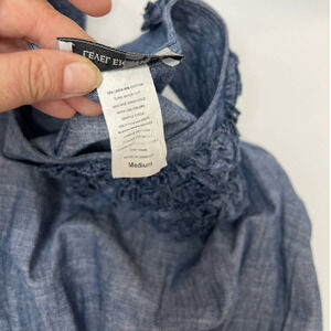 Level Eight Women's A Line Dress Blue Chambray Flower Scoop Neck Sleeveless