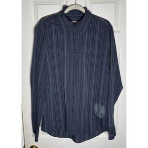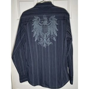 Level Ten Button Up Shirt Mens L Large Blue Stripe Long Sleeve Eagle Graphic