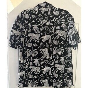 Level Ten Short Sleeve Button Down Shirt Black White Asian Tiger Dragon Size L