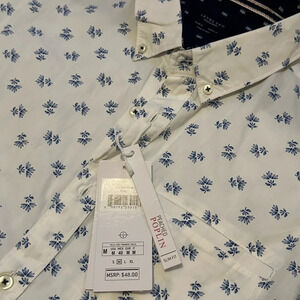 NWT button down by Level ten. Peaches poplin slim fit style with blue and white floral pattern. Size medium, measures 22” pit to pit, 31.5” long.