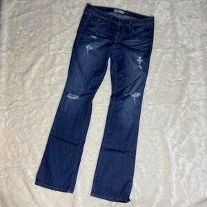 Level 99 Denim slim bot size 30. Factory destructed. a few blown out threads and on the left thigh the split is rather large.