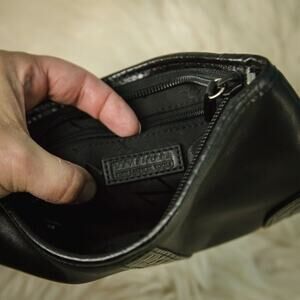 Levenger Black Leather Croc Embossed Detail Zip Top Wrist Strap Handbag Purse Bag Wallet Clutch Wristlet