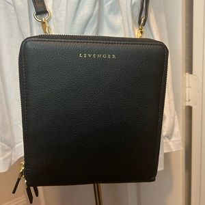 Levenger Carrie Plus Crossbody Pebbled Leather in Black