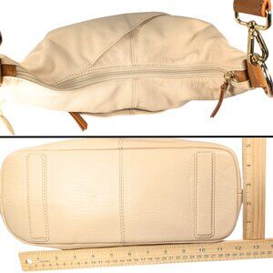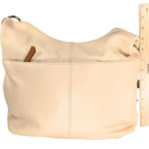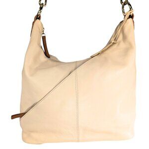Levenger cream pebbled leather hobo bag w/brown leather strap & accents