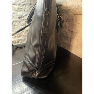 This Levenger briefcase is a stylish and functional accessory for any working woman. With its large size and numerous compartments, it provides ample space for all your documents and essentials. The briefcase features a pebbled leather exterior in classic black, with silver hardware accents and a detachable strap for added convenience.