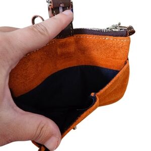 Levenger Wristlet Zip Pouch Orange Suede Leather With Front Pocket
