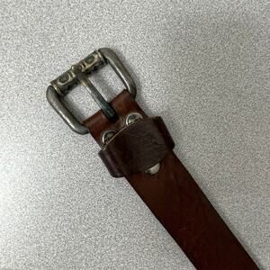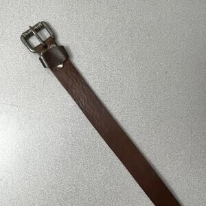 This listing is for a Leventakis Mens Italian Leather Belt. Silvertone buckle. Textured roller at the buckle. Approx 1.5in wide.