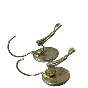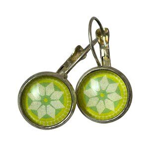 Leverback Earrings Green Geometric Star Pattern Silver Tone in good preowned condition.