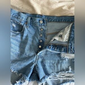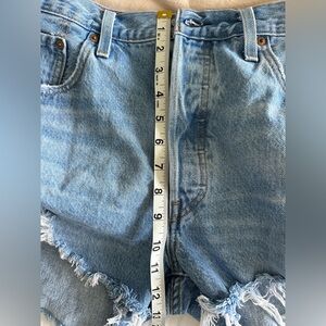Levi 501 Cutoff Denim High Rise Button Fly 100% Cotton Shorts, Size 32 3” inseam