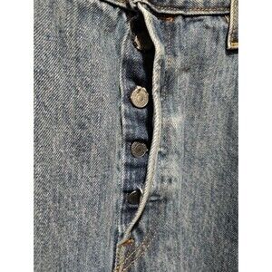 The product is a rare pair of Levi's 501 Jeans in a 36x30 size for men. These straight-leg jeans feature a solid blue color with a dark fabric wash, made of cotton denim. The jeans have a regular fit with a 15" rise and a 5-pocket design. The Levi's 501 series is known for its classic Western and ranch-inspired style, with accents like a button closure, logo, and red tab. These jeans combine comfort, practicality, and timeless style, making them a versatile wardrobe staple for any man looking for a quality pair of denim pants.