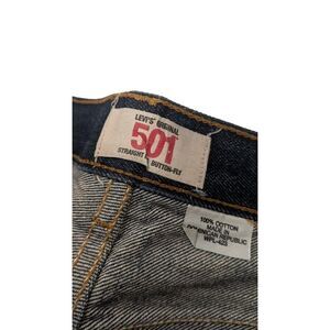 Elevate your wardrobe with these Levi's 501 men's straight denim blue jeans in size 40 with a 32-inch inseam. Featuring a classic button fly and original wash design, these jeans are perfect for adding some retro, utility, and work-inspired style to your look. Made from high-quality denim fabric, these jeans are durable and comfortable to wear all day long. With the iconic Levi's brand and model name, you can be sure you're getting a timeless and fashionable piece. Perfect for any occasion, these jeans are a must-have for any wardrobe.