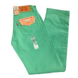 LEVI 501 STRAIGHT SHRINK TO FIT RAW UNWASHED DENIM JEANS PASTEL GREEN 30X34
