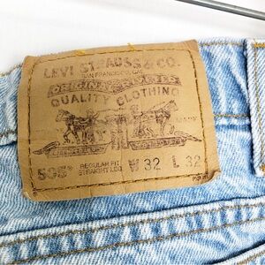 Levi 505 regular fit straight leg light wash straight leg Jeans, has orange tag on the right back pocket