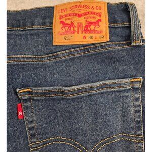 Levi 511 Men's Straight Leg Jean Red Tag Trademark Logo. Size 36x32