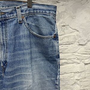 Item is pre owned. Nice faded/distressed condition, denim is soft and well broken in. Some fraying on the hems. May have some small or faint marks here and there, nothing i would consider a notable flaw. Please refer to photos for detail.