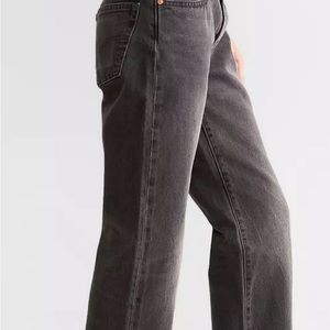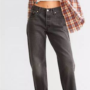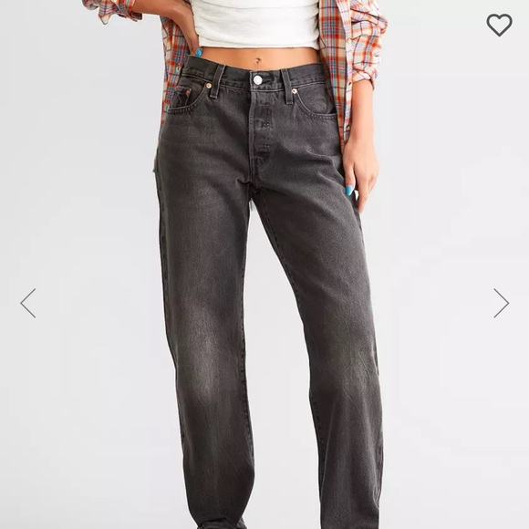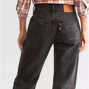 Levi button fly raw hem straight leg jeans. Black wash color 5 pockets no stretch good quality jeans size 33x32 women