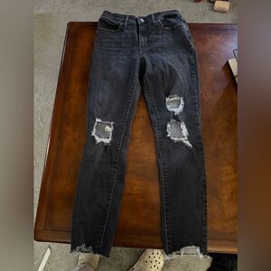 Levi 721 High Rise Skinny Jeans Black Frey Bottom Distressed Women's Size 8