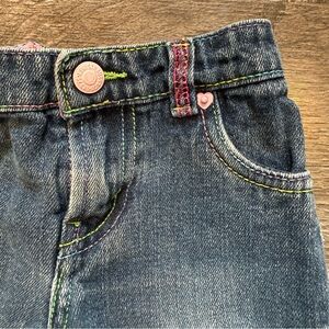 Adorable baby girl Levi jeans. Either a bootcut or a flare with colorful embroidered pocket details and heart shaped metal accents. Snap closure.
