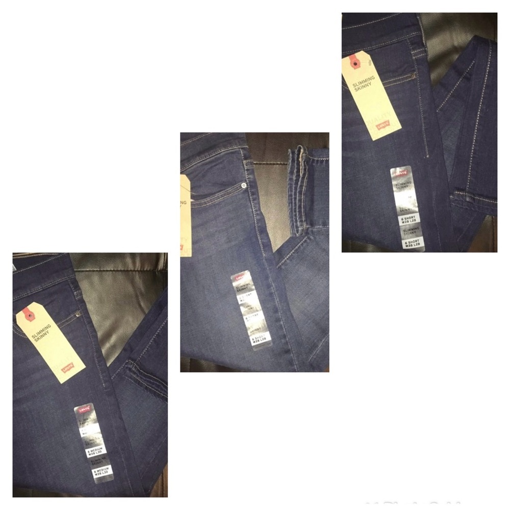 3 pairs of brand-new Levi jeans Two are 6 short other is 6 medium Slimming skinny