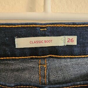 Levi dark wash jeans. Classic bootcut with stretch. Size 26. Great condition.